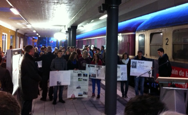 A. Roshol : Den Impuls gab der der "Zug der Erinnerung", der den 70. Jahrestag der Massentransporte aus den Niederlanden nach Sobibór zum Anlass für eine Fahrt über 10 deutsche Bahnhöfe nahm. Gemeinsam mit dem Internationalen Bildungs- und Begegnungswerk (IBB) haben wir diesen Impuls regional ausgeweitet und entscheidend vertieft. Wir werden auch für eine Beständigkeit dieser Spurensuche sorgen. Sie wird über den Tag hinausgehen.