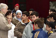 Bereits am Wochenende (19.-20.04) hatten Tausende den Zug am Berliner Westhafen aufgesucht - einem weiteren Ort der früheren Massendeportationen, die vom Rangierbahnhof Moabit ausgingen. Auch hier, auf einem Industriegelände, kam es zu langen Wartezeiten. Mehrere ehemalige Deportierte und ihre Angehörigen besuchten den Zug. Wie bereits am Berliner Ostbahnhof übergaben sie Lebenszeugnisse. Zwei Jungen im Alter zwischen 8 und 12 Jahren, deren Großeltern zu den Opfern gehörten, unterstützten das Gedenken mit Spenden, die sie bei ihren Freunden gesammelt hatten: 87 Euro. "Wir danken allen Berlinern, deren Zuspruch bewegend ist", sagten die Initiatoren bei der Verabschiedung des Zuges auf dem S-Bahnhof Grunewald. "Dieser Zuspruch zeigt, daß das Gedenken behindert, aber nicht verboten werden kann. Die enorme Anteilnahme macht Mut!"