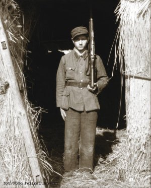 Die deutsche Brutalität trieb größer werdende Teile der polnischen Landbevölkerung in den Widerstand. Auch davon berichten die Bilder von Feliks Lukowski (Foto: Ein jugendlicher Partisan).