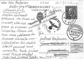 Eine Postkarte, die Ilse aus Schweden nach Deutschland schickt, kommt zurück: "Abgereist, ohne Angabe der Adresse". Zielort des "Reichsbahn"-Transports war Riga. Die Eltern kehren von dort nicht zurück.