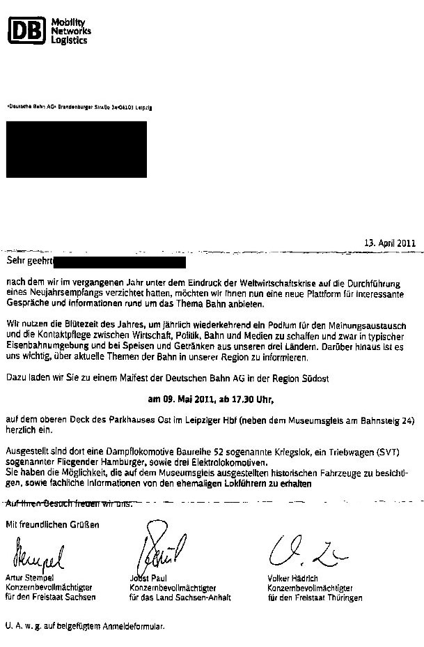 Einladung der DB AG im Original