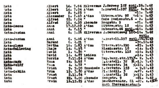 In das Durchgangslager Westerbork wiesen die NS-Besatzer fast sämtliche jüdische Familien ein, der sie in den Niederlanden habhaft werden konnten. Dazu gehörten auch deutsche Emigranten, die vor dem NS-Terror geflohen waren und sich nach der deutschen Okkupation in einer Falle befanden. Eine der in Westerbork Inhaftierten war die 18-jährige Doris Katz. Nach ihrer Schulzeit in Michelstadt (Hessen) und den antisemitischen Pogromen im November 1938 hatten die Eltern Doris nach Amsterdam geschickt, wo sie von einem "Kinderkomitee" im Jüdischen Mädchen-Waisenhaus untergebracht wurde. Als die deutschen Besatzer im Februar 1943 den Befehl zur Räumung gaben, kam Doris Katz nach Westerbork - zu den dort internierten anderen Kindern und Jugendlichen aus ganz Holland. Am 2. März 1943 steht ihr Name auf der Transportliste. In den 24 Waggons mit insgesamt 1.105 Deportierten sitzen 149 Kinder, darunter die drei Geschwister Benjamin, Bernhard und Miriam Ahrend sowie Alfred Hofmann und Ruth Nathan aus Frankfurt a.M., Lotte und Salla Auszenberg sowie Alfred Nathan aus Köln, Edith und Gottlieb Franck aus Düsseldorf, Ruth Elfriede Gottschalk aus Geilenkirchen, Ingrid Gronowski und Gisela Spicker aus dem damaligen Königsberg, Semi Hofmann aus Karlsruhe, Hans Klaus Naftalie aus Bochum, Hanna Rones und Rita Weiss aus Berlin, Joachim Schaumberg aus Dinslaken. Keines dieser Kinder kehrt zurück.