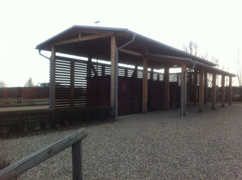 Im Innenbereich bieten die Holzverstrebungen Platz für Andenken an die NS-Opfer . Die Anlage könnte für das Land Brandenburg und die Stadt Eisenhüttenstadt vorbildhaft sein, würden die Behörden dem Antrag des "Zug der Erinnerung" auf unverzügliche Unterschutzstellung folgen, statt das Gedenken in Museen zu exilieren und aus dem öffentlichen Raum zu verbannen.