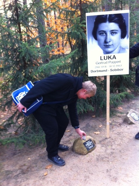Mit einem Gedenkstein wird in Sobibór auch Gertrud Poppert-Schönborn aus Dortmund geehrt. Unter dem Tarnnamen "Luka" gehörte sie dem äußeren Kreis der Verschwörer an, die am 14. Oktober 1943 einen bewaffneten Ausbruch aus dem Lager wagten. Seitdem fehlt von "Luka" jede Spur.